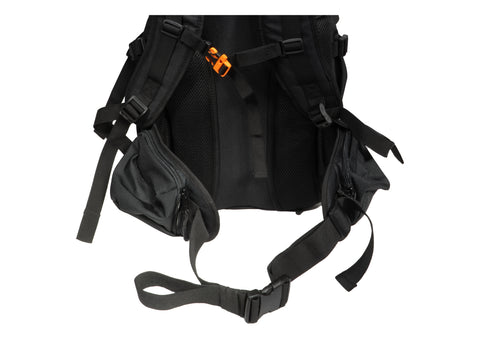 - Adjustable padded mesh hip belt with load adjusters for additional torso support